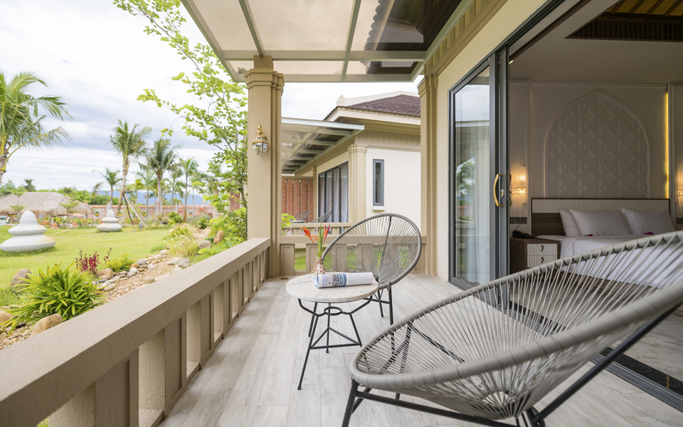 Với lợi thế về vị trí, không gian xanh bao bọc. Khách sạn Di sản Mỹ Sơn với khu vườn xanh mát trải dài trên một diện tích gần 20,000 m2 , bao gồm những biệt thự xinh xắn xen lẫn với những khu nhà 3 tầng mang vóc dáng của một quần thể kiến trúc pha trộn giữa văn hóa Cham Pa cổ xưa độc đáo và kiến trúc văn hóa đương đại.