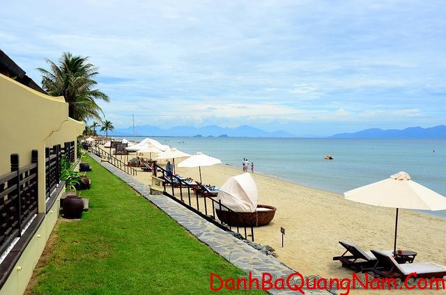 Những loài hoa dại nhỏ bé giản dị, khiêm tốn bên đường rập rờn những cánh bướm hay những cành phong lan đài các đẫm sương đêm, những rặng liễu xõa mình xuống cát hay những hàng tre xanh vút trên trời cao tô màu trong nắng. Chút thơ mộng đó làm cho bạn thêm xao xuyến với cảnh đẹp nơi đây. Khi bình minh lên, từ những khu nhà nghỉ, bạn có thể mở cửa sổ có ban công hướng ra biển để đón bình minh lên. Ngoài khơi xa kia mặt trời đang nhởn nhơ cùng với mây với gió, thấp thoáng ngoài xa những cánh buồm nhỏ đi tìm những luồng cá mới, báo hiệu một ngày mới tươi đẹp tràn về.