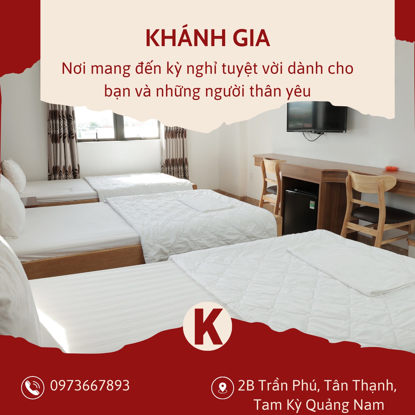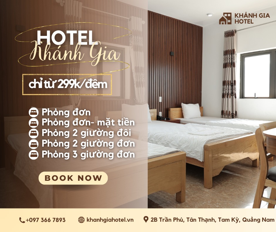 Dù bạn đến Tam Kỳ để công tác hay du lịch, chúng tôi luôn sẵn sàng đồng hành, mang đến không gian nghỉ dưỡng tiện nghi và thân thiện. Khánh Gia Hotel – Người bạn đáng tin cậy trên hành trình khám phá của bạn! ✈️🌿