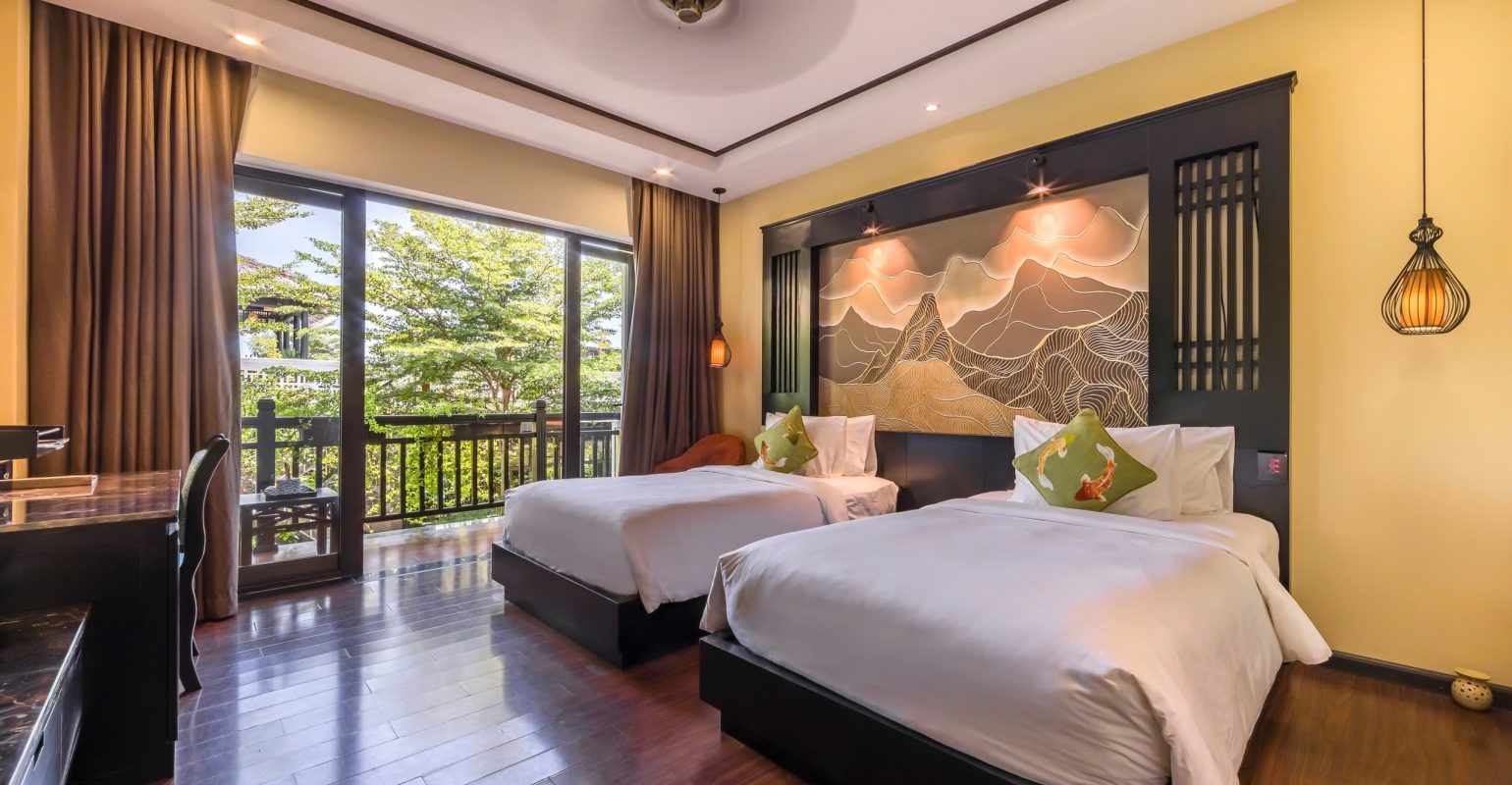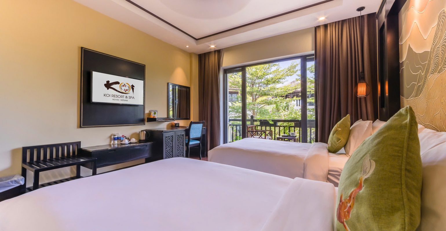 Lấy cảm hứng từ nét đẹp quyến rũ và cổ kính của một di sản văn hóa vượt thời gian, kiến trúc độc đáo kết hợp với không gian xanh tự nhiên của Koi Resort & Spa Hội An sẽ mang đến một trải nghiệm nghỉ dưỡng sang trọng và đẳng cấp. Ẩn mình trên một ốc đảo xanh tươi bên dòng sông Đế Võng, khu nghỉ dưỡng mang đến du khách một không gian riêng tư và yên bình. Chỉ cách bãi biển Cửa Đại một vài bước chân, khu nghỉ dưỡng ven sông này sẽ mang đến những giây phút tuyệt vời còn đọng mãi trong tâm trí bạn.